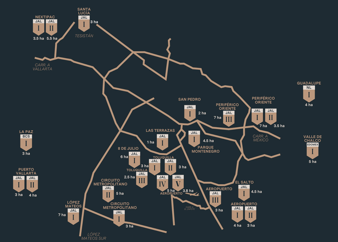 Nuestros parques están diseñados con un enfoque last mile, cerca de centros de distribución, autopistas, aeropuertos y nodos logísticos. Lo que nos convierte en opciones preferidas por empresas de logística, e-commerce y manufactura ligera.